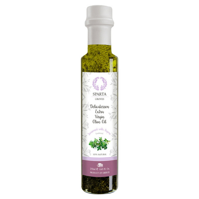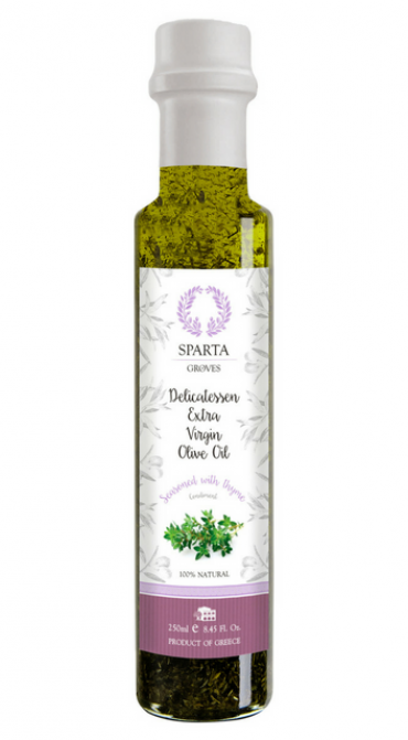 Το εξαιρετικά παρθένο ελαιόλαδο και το θυμάρι γίνονται ένα!Ιδανικό για σαλάτες, ψητά, ζυμαρικά, σάλτσες και ψάρι.Διατίθεται σε διάφανο γυάλινο μπουκάλι των 250ml με καλοκαιρινή εμφάνιση